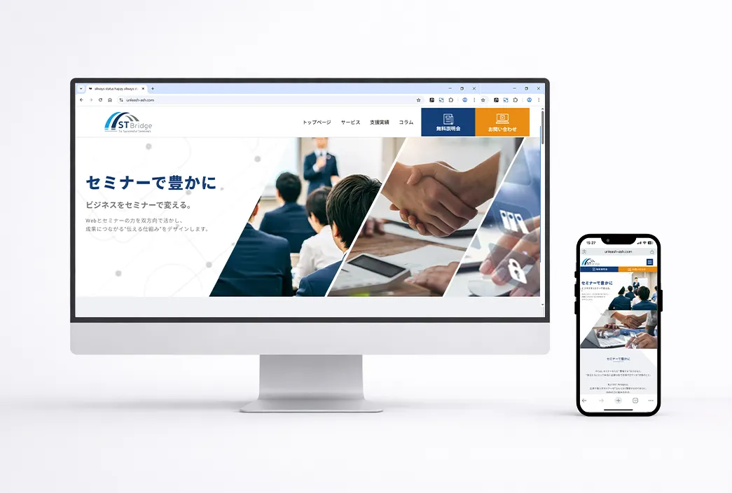 Works 制作実績 Webサイト LP Web画像 グラフィック 導入事例 Webサイト 和英堂興産 株式会社 Webサイト HP 株式会社 ワース・システムクリエイ Webサイト HP ST Bridge サイトデザイン HP GREEN Transport Evolve株式会社 Webサイト HP 司法書士事務所 Webサイト HP お問い合わせ LP WEBデザイン5日間チャレンジプログラム LPデザイン HP ゴルフレッスン LPデザイン HP Instagram5日間チャレンジプログラム LPデザイン HP ゆがみ矯正インソール LPデザイン HP 看護師転職サイト LPデザイン HP お問い合わせ Web画像 Webサービス サービス告知バナー HP 美容サロン|サービスバナー 自主制作 HP 運搬業|求人バナー 自主制作 HP お問い合わせ Webサービス サービス告知バナー HP Web業界|セミナー告知バナー 自主制作 HP Web業界|セミナー告知バナー 自主制作 HP グラフィック 和英堂興産株式会社 名刺 HP 高校部活動 応援ツール HP Unleash-ash design 名刺 HP お問い合わせ 導入事例 Unleash-ash design ポートフォリオサイト HP お問い合わせ 成果につながるWebサイトを制作します 成果につながるWebサイトを制作します 見た目だけでなく、ユーザー行動をもとに改善できる設計をご提案します。 お問い合わせ ※ご相談は無料です